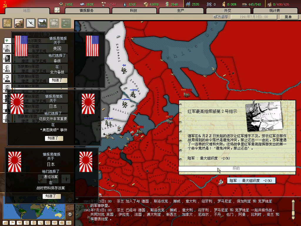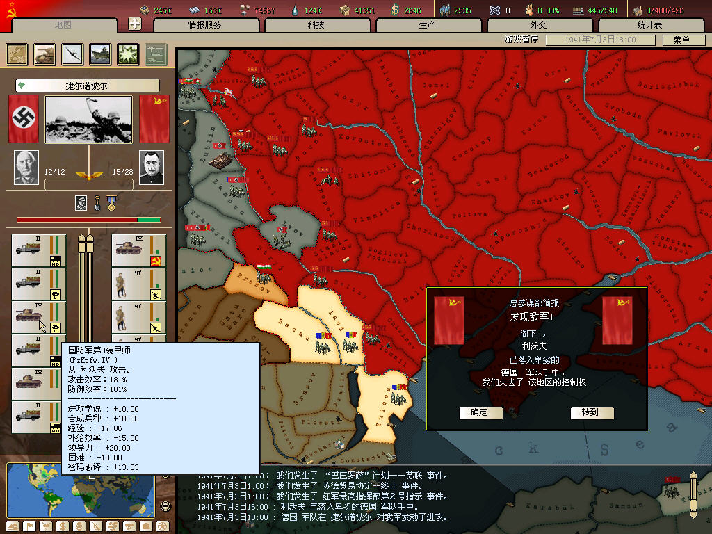 事件重复是读档的缘故,有时一个撤退方向不对,二十几个师就给坦克撵上了