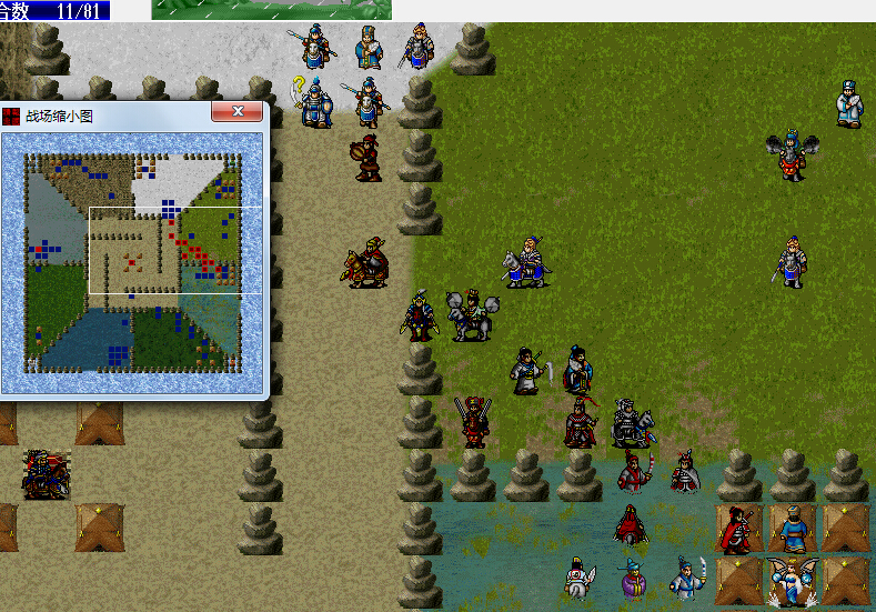 这关的宝物获得条件估计是最让玩家痛恨的一种类型,也就是需要触发友军和敌军的对话,而且还是13个,简直丧心病狂。不过岳飞传的设定还算良心,友军是近战,AI设定是走向目标,敌军目标人物有12个都是坚守原地,只要控制友军的走位就行了。更坑的MOD是杨家将,有个宝物需要触发两个法师的对话,比近战难控制多了。不过杨家将那一关有地形可以利用,还不算最坑。最坑的MOD那是84吕布传,有一关的宝物需要触发两个弓骑的对话才能拿,那个宝物我一般都是放弃掉的。