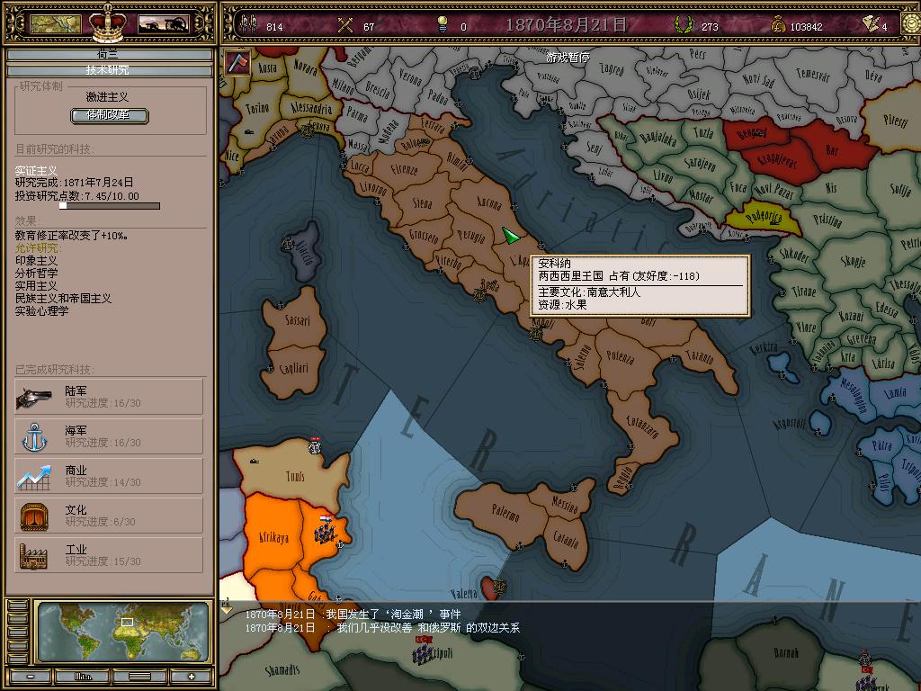 两西西里开始统一意大利...准备掺和掺和,被奥地利宣战之后,西西里失去了法国的同盟,好机会