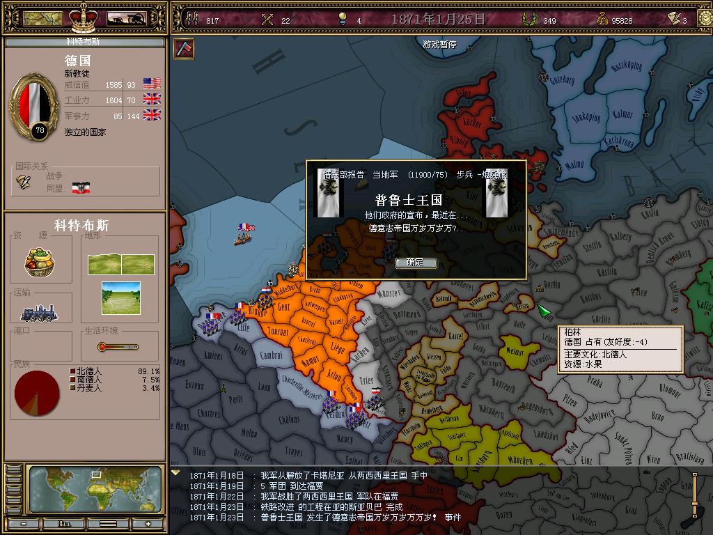 拿下德国之后,眼前已经没有直接威胁,于是开始随意打仗,扩张