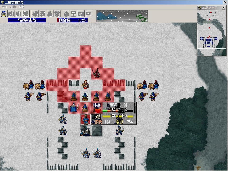 荀彧先向前走气合,回归后再向前朱雀,两次朱雀后关隘上只剩俩步兵,由夏侯惇用蛇矛解决。