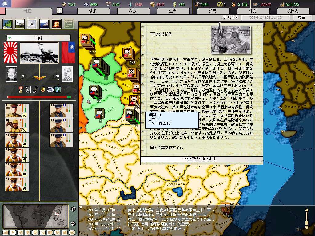 在平津一线主要部署民兵和不满员步兵师设置死战,保证牢牢托住日军;少部分普通中央军和小弟部队不设死战,准备一有伤亡随时可以撤退。