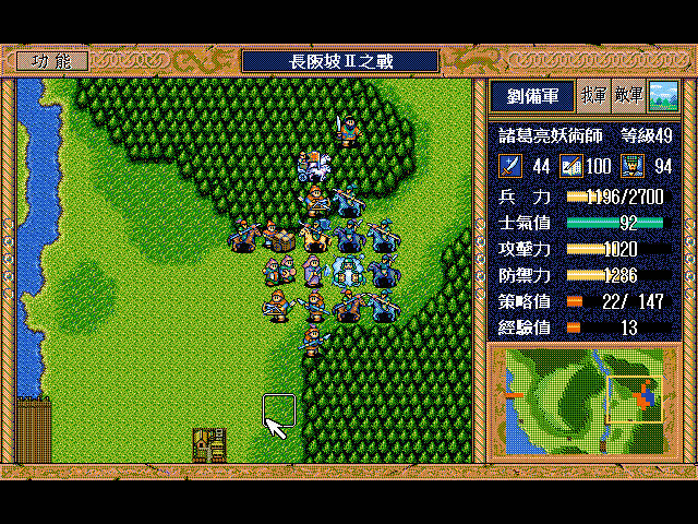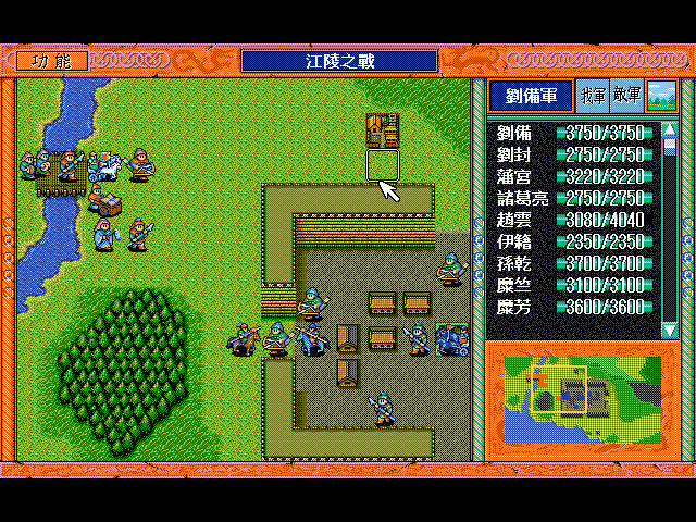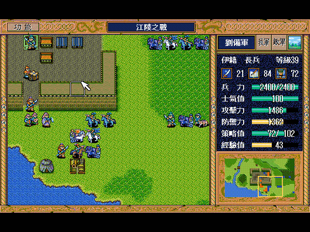 诸葛亮升到43级,不能打曹操了,于是换位靠着糜竺用牵制。