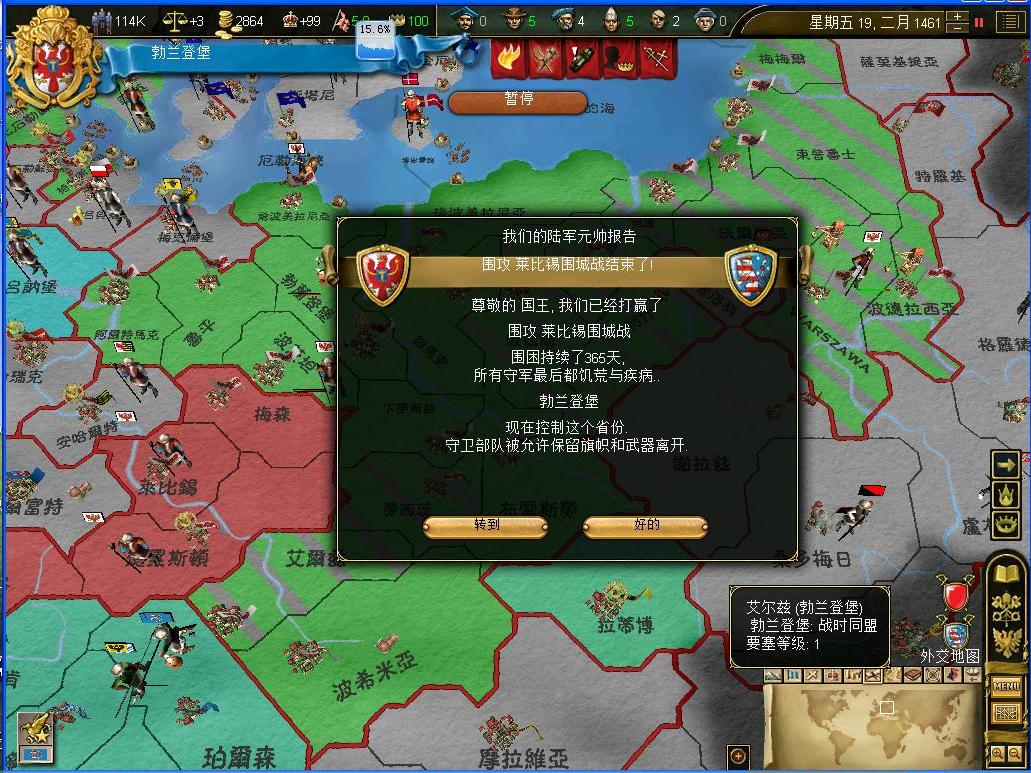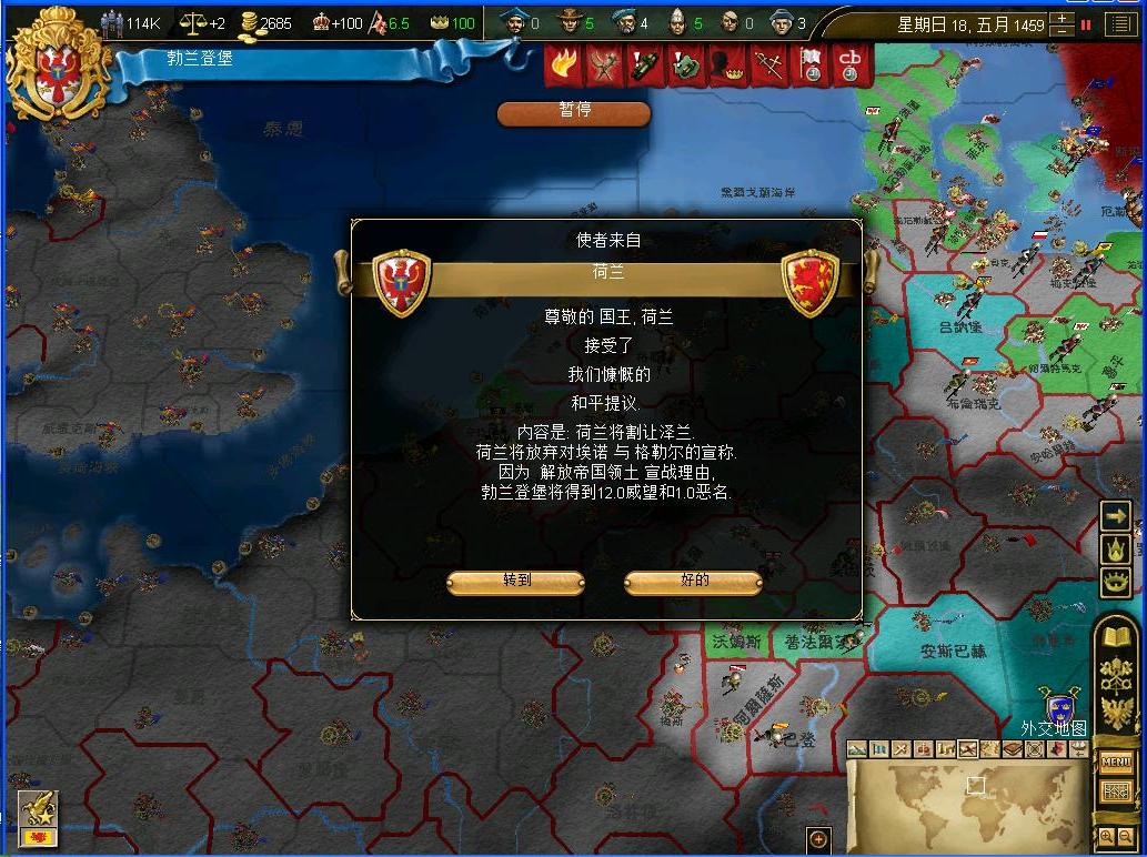 大军基本上也要修正了,在外交大臣的磋商下,公国拿下了波兰的海外省,并且让马佐维亚复国....就这样,地N次和波兰的战争结束了,这次波兰真的是大伤元气啊