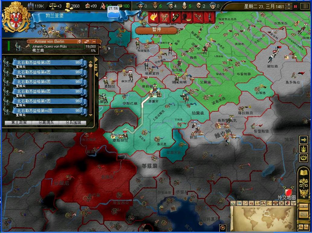 爱国军真是仗义,不仅仅给我拿下了丹麦的诸多省份,还给了我们3w7的士兵....虽然大多数都是步兵,但是也是聊胜于无啊.