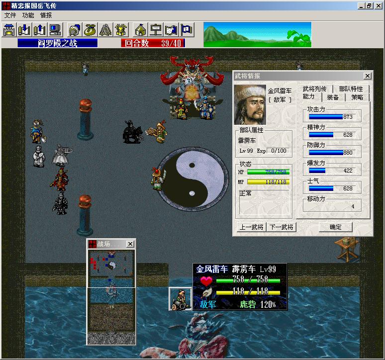 这一关是我到目前为止花费战术消耗物资、脑汁以及sl时间最多的一关。以前穿着装备时难度不大,感觉不出那种决战的气氛。现在大量利用了友军的攻击和卡位,这才发现,这一战里面宋金两国几乎都动用上了全国兵力,还活着的有名有姓的武将大部分都出场了,真的是名副其实的“黄龙决死战”啊!
