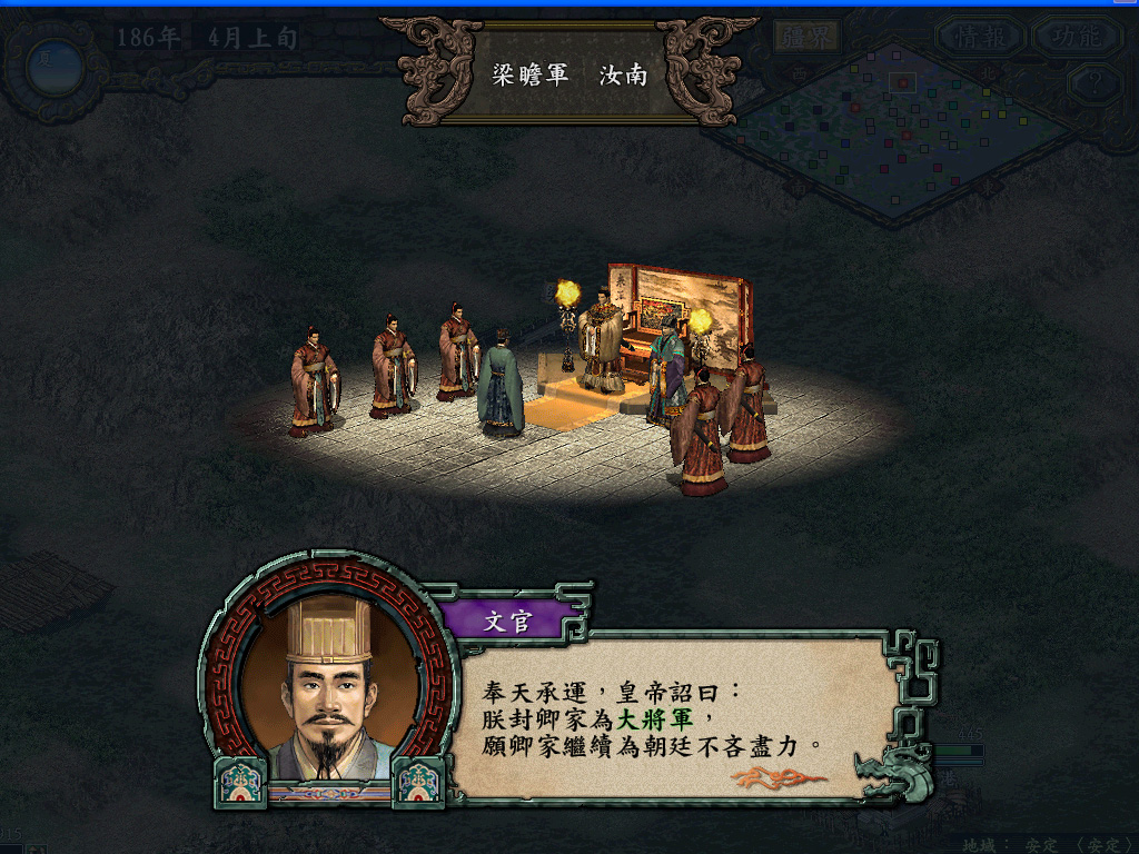 12月,顶王亲自率军兵临北海,仁君齐王为了满城百姓的免受战火之殃,与偶军使者董厥相商两军合并之事。