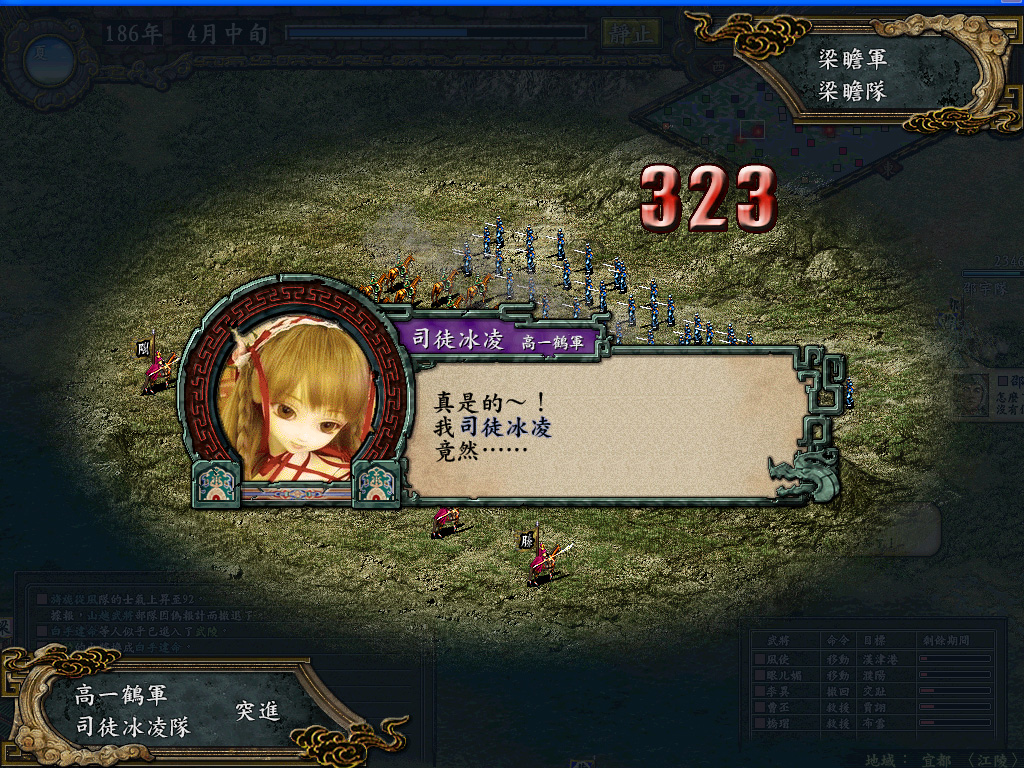 同旬,跟着死蚂蚁受了不少委屈(有好几旬只是被骂却没教兵法)的小猫MM艺成,四围只有统率和智力让人满意,武政都不够如意(发现时报告这两项都能上90+的),亏偶还延长了一个月教导时间,倒是死蚂蚁沾光学会了治疗,联系之前死蚂蚁授徒爱骂人的劣迹(记得他时光倒流之前当老师也骂人),这次骂了PLMM终于令偶忍无可忍,决定以后不再让他当教师