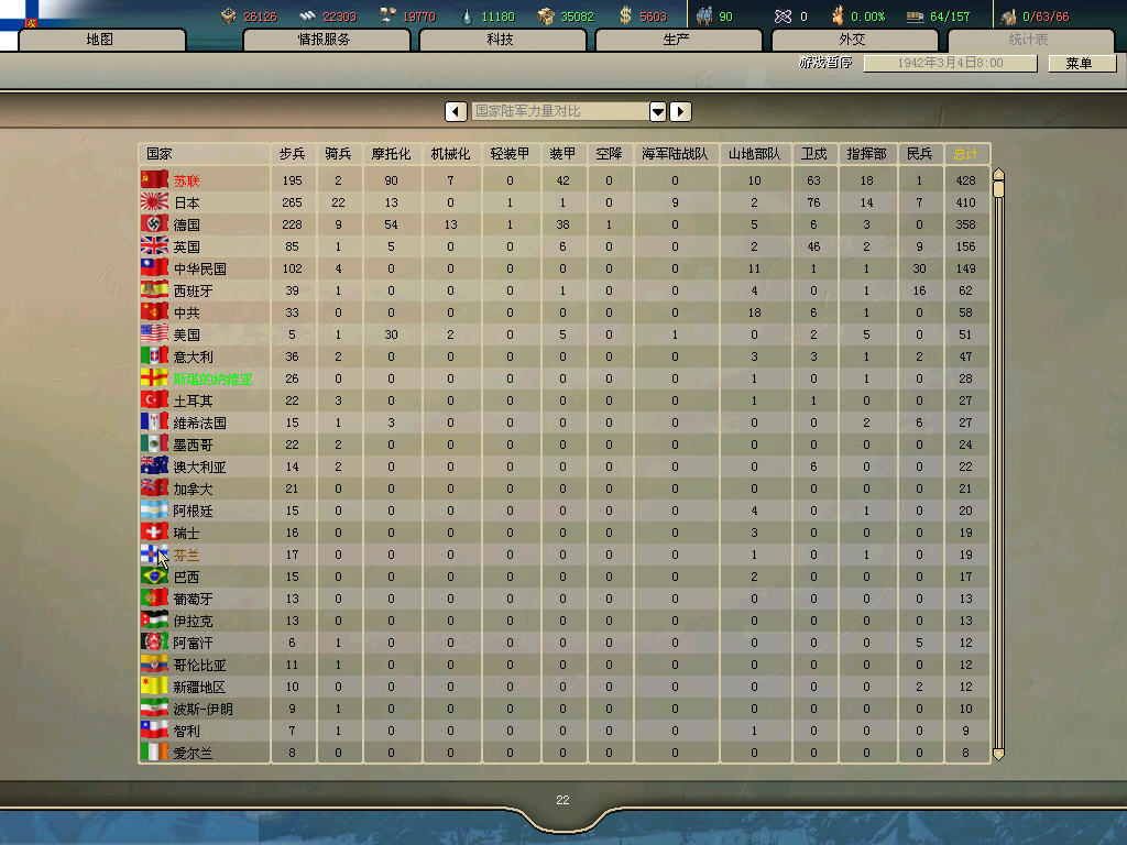 日本:典型的步兵优先.总数惊人.看得出来东亚交战双方都很缺油.(22骑兵师orz)