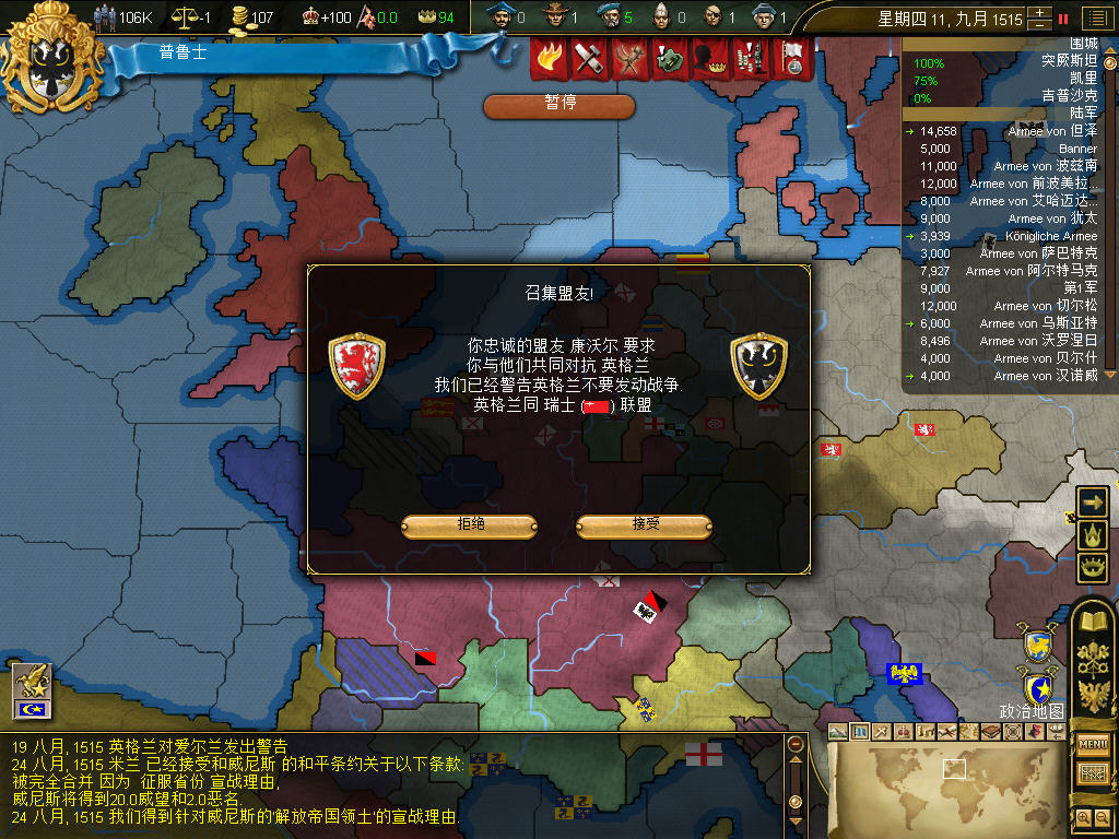 宣战荷兰,现在荷兰和勃艮第打的热火朝天,为了救援勃艮第,所以一定要出击