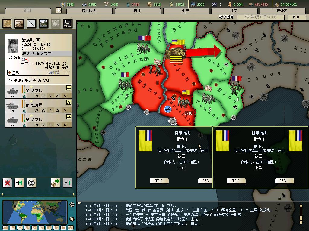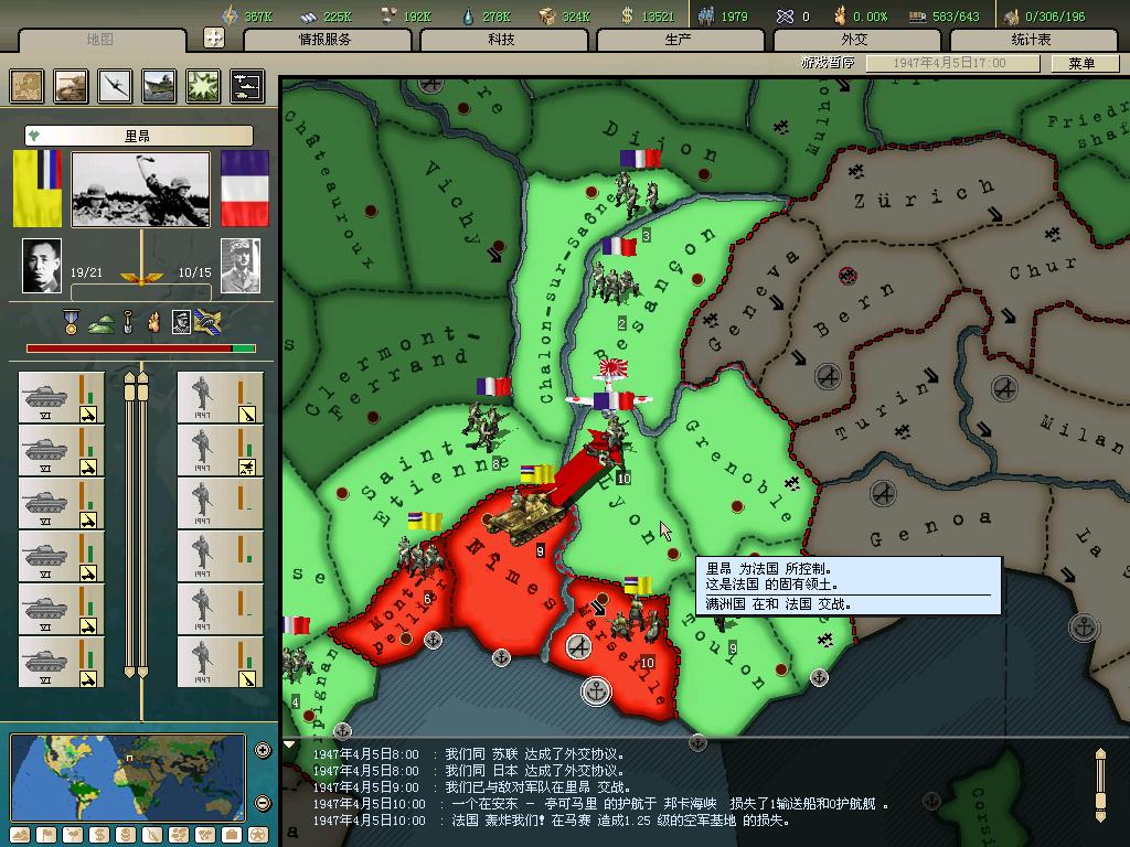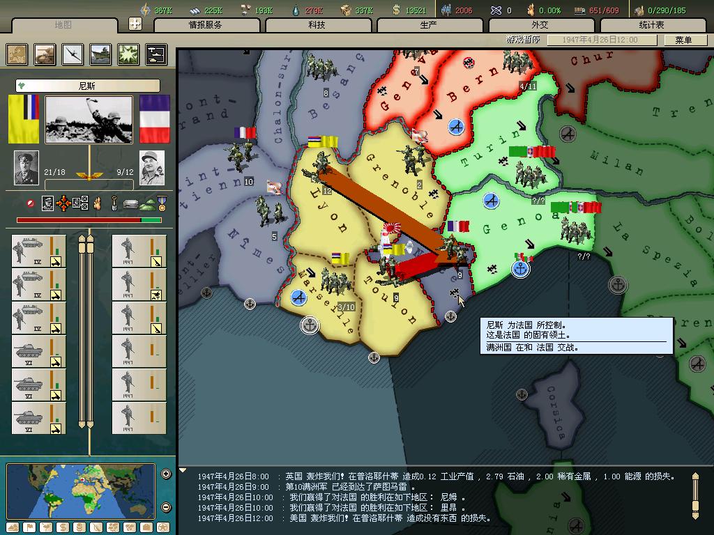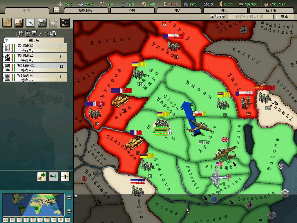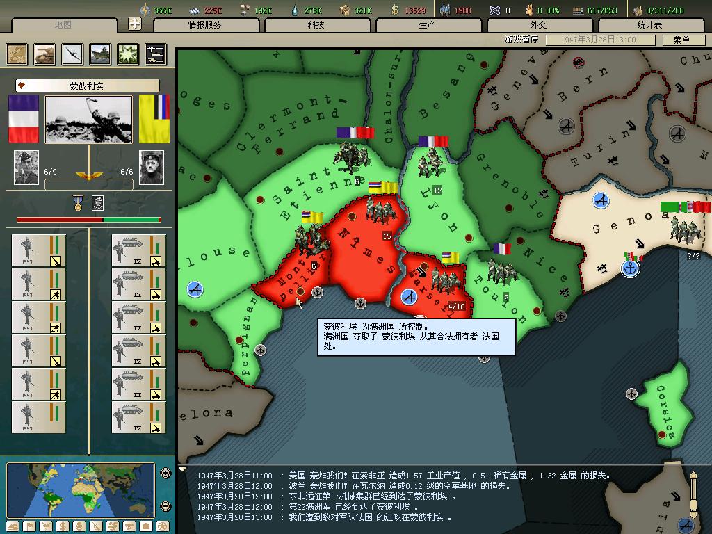 标题: DA1.3原版36满州国娱乐战报, 已更新至:1948年夏季 中日满轴心对抗英法美同盟 欧洲反攻势如破竹 攻陷华沙 吞并波兰!