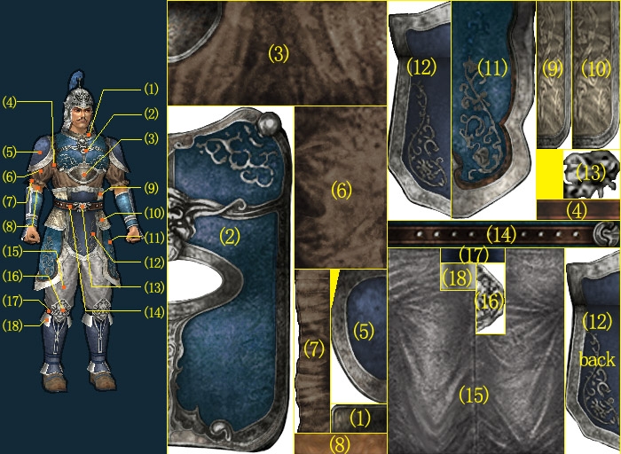 首先,给大家要说明的是公用模型贴图的位置关系对照图。