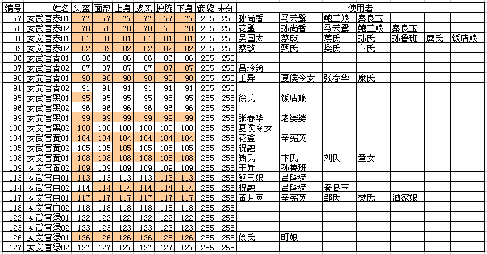 (目前只有女性武将的,男性武将的工作量超大,看哪位达人发一个……)