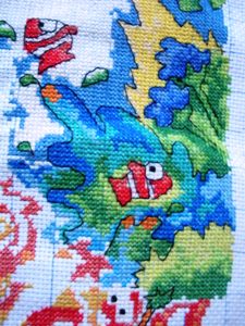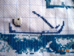 其实是绣了不少的,不仅包括下面的水,还有上面的白色的部分……其实这张图不是满绣,但是我个人来说比较喜欢满绣,因为摸上去手感比较好。而且反正空着的地方不是很多,所以打算填满了~~