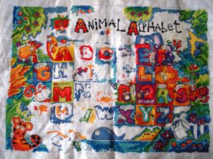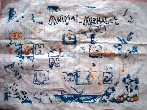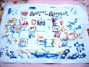 狠狠地绣了绣,于是,斑马的脑袋已经出来了。不要以为没多少哦,下面的白色都已经填上了呢。