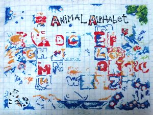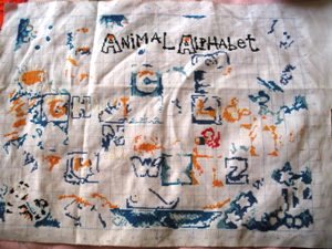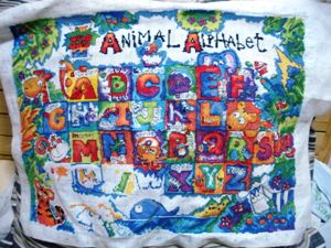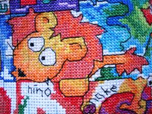 斑马的草也绣了绣,果子还差一种颜色,之后就可以勾边了: