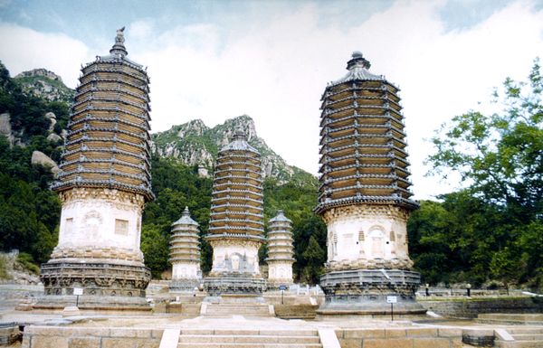 ——绿树白石间,山溪流淌旁,整整齐齐的五座高塔。那是我神往已久,却一直没有机会亲眼看看的法华寺。