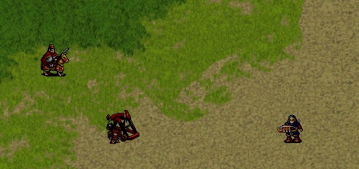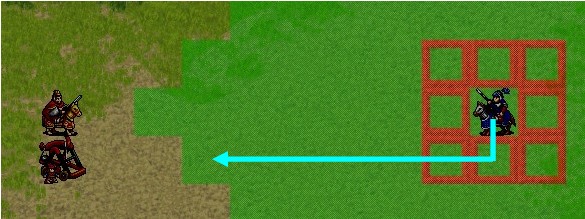 下图我军两个人在AI的攻击区域外,AI是连弩兵。