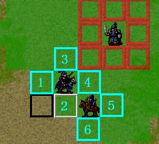 下图AI有三个等价值的攻击位可以攻击,优先度是1-2-3