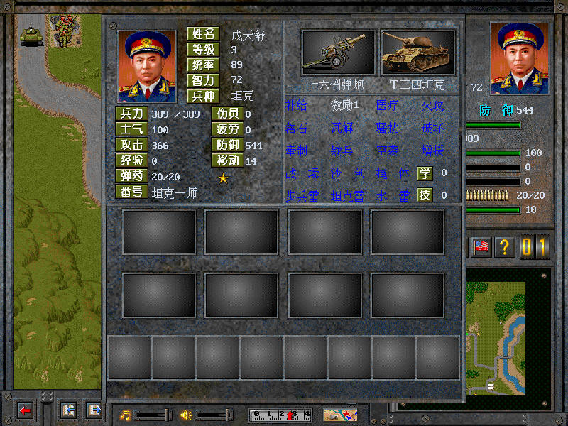弹药不够用的,我把弹药成长值改多点,呵呵。另外,我军坦克出现的太晚,早期就有就好玩了,所以在第一关我就把一些兵种,比如骑兵变成坦克了。