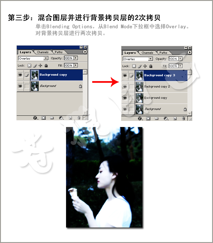 第二(拷贝)层:加暗,也就是第四步中提到的