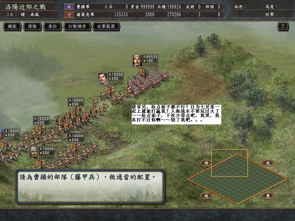 我选新武将,卧龙出庐剧本,在云南扬旗,费尽心机弄人材,用美酒+谣言好不容易弄到了曹操的荀X,大喜,接着又在新野撞见了邓艾,使劲灌酒,关系成了亲密,然后登用,心想该对我死心塌地了吧,于是和邓直奔云南,刚走了一半,邓艾竟然被电脑登过去了!操