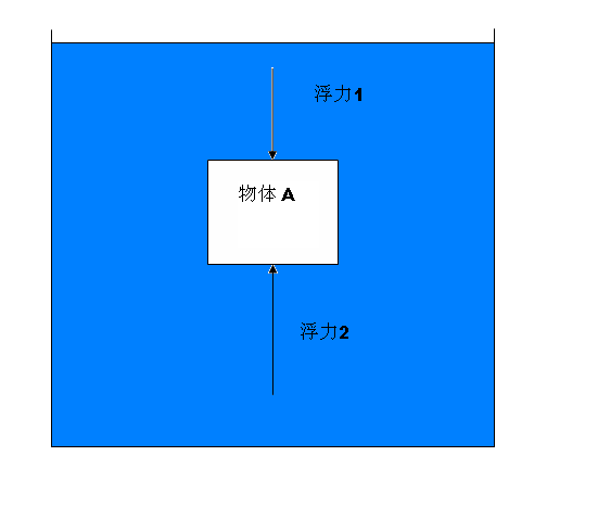 下面这个图显示一个物体在水里浮着。这个物体受浮力1和浮力2还有地心引力。这个物体不在加速: