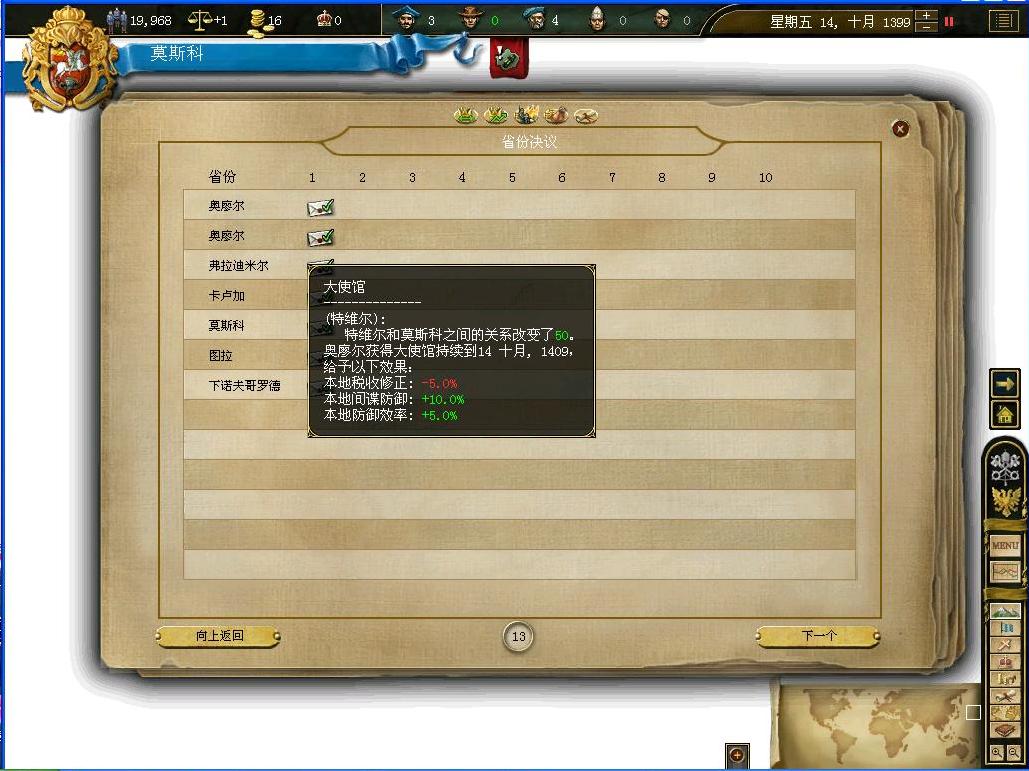 5月,丹麦,阿维尼翁以及吕讷堡先后向帝国提出贸易协议.现在帝国在贸易上尚处于起步期,不宜树敌过多,所以这些协议被全部接受了