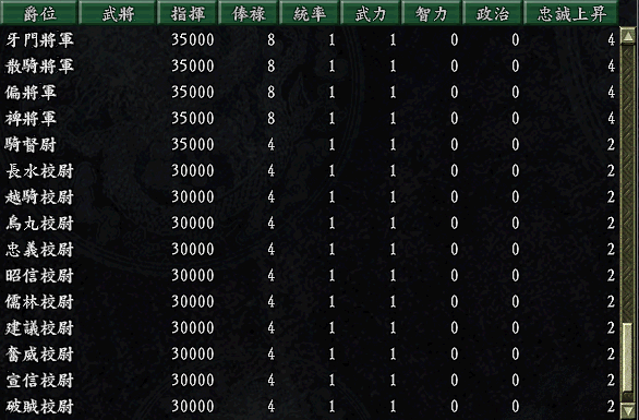 那我想可以把校尉以下的官爵换成文官的..毕竟基本都是扔在大后方的人..山河泪智勇双全的武将太多了...
