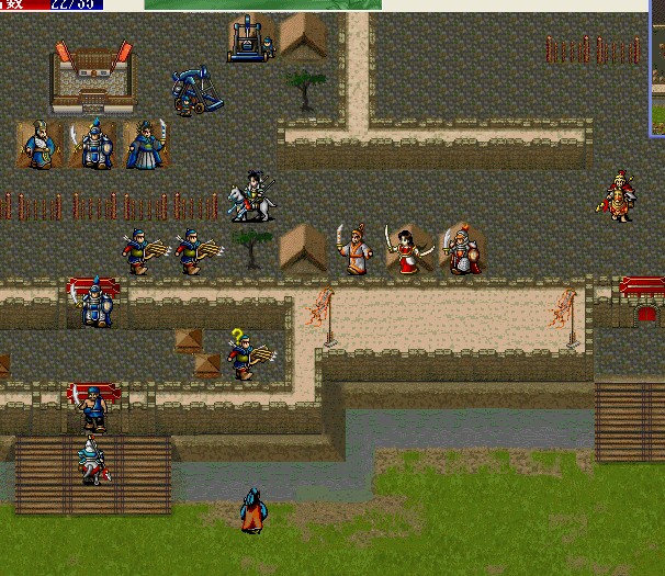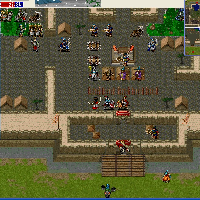 第一回合SL出岳飞那3个人中必定有2个人解除混乱,其中一个给岳飞吃恢复状态的,欧阳从善利用风云箭打死关上的步兵,张宝冲进去和岳飞对话(岳飞顺便吃个经验果) 李琴模仿强行给YYP, 最重要的一点是拿银锤的王横先不要跑到关前,因为下回合会有个武术家到关上,免的被秒杀。