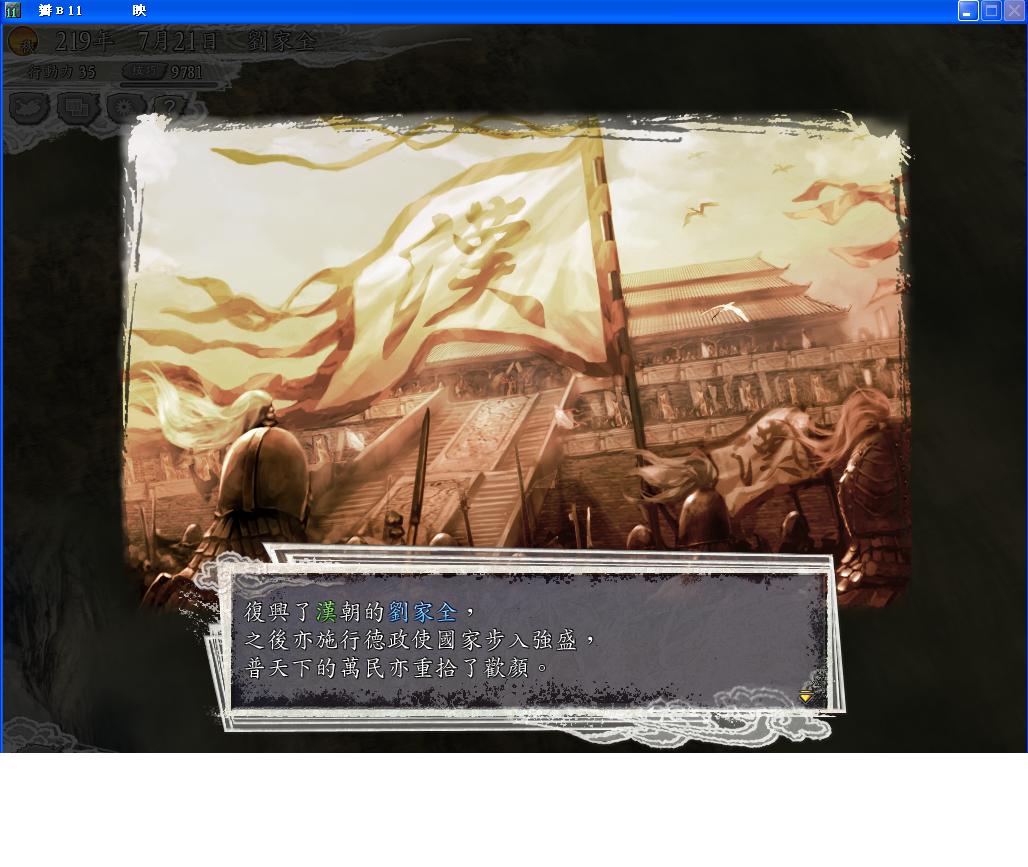 我一直玩的9,最近才玩的11,打了个汉800年的结局,贴个图,呵呵
