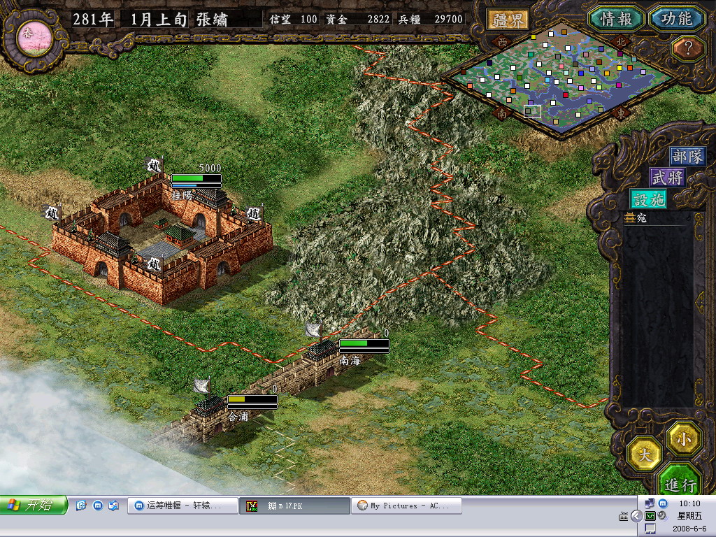 简单说,比如图4,定陶和彭城各跨了2个地域(注意看疆界的边线),所以会出现部队进出的问题。一个设施只能在一个地域中,不能跨界。