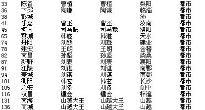 全君主及全史实武将散落在大陆各地。司马懿、毋丘俭等没