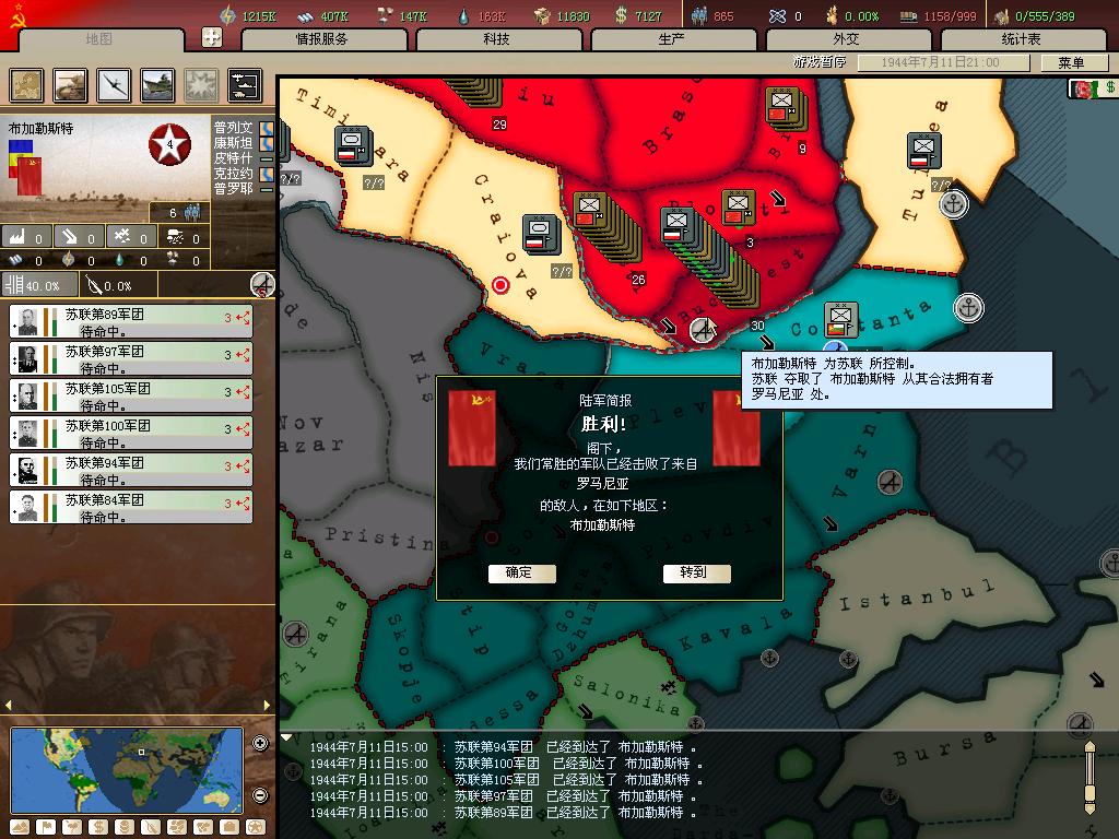6月10日,红军占领普里什蒂耶油田,距离罗马尼亚首都布加勒斯特只有几十公里之遥。