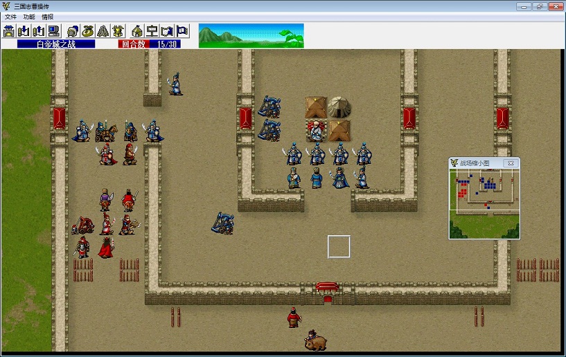 这关开始可以选择攻东关还是西关,关系到下一关的出场情况:如果选择攻西关,下关能出场15人,但只能打30回合;选择攻东关,下关只能出场13人,但是能打40回合。考虑到我方大多数文官能在剑阁之战升到50级,成都之战不需要出战太多武将,反而是多打10回合更能练级,我选择了攻打东关。