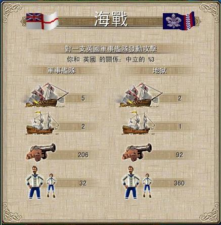 战斗一开始,我的两艘战争用大帆船使用了分进合击的战术。其中一艘抢占上风优势后,使用铁珠散弹大量杀伤敌舰甲板水手,另外一艘则凭借顺风航速的优势逐一进行接舷战。