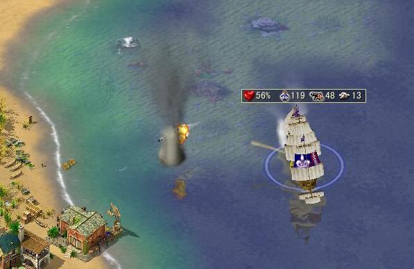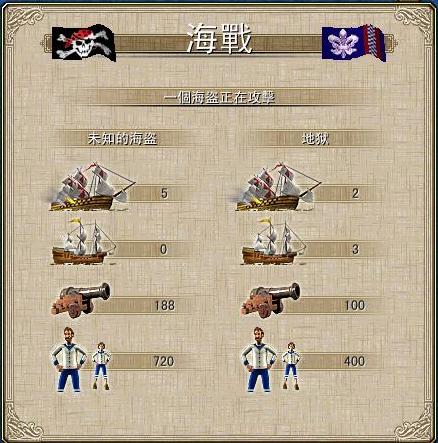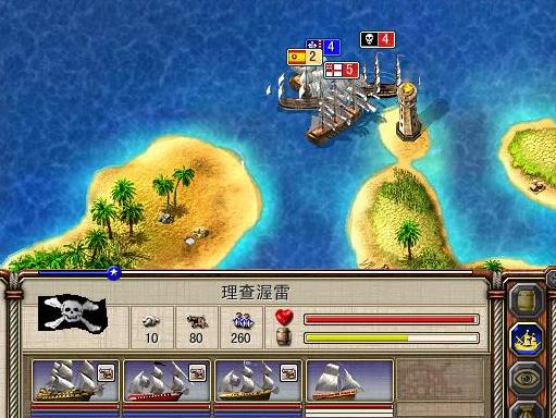 在击沉两艘海盗三桅帆船后,海盗巢穴的两座相互呼应的炮台让我吃了不少苦头,但是最终还是在地狱号的炮火下被击毁