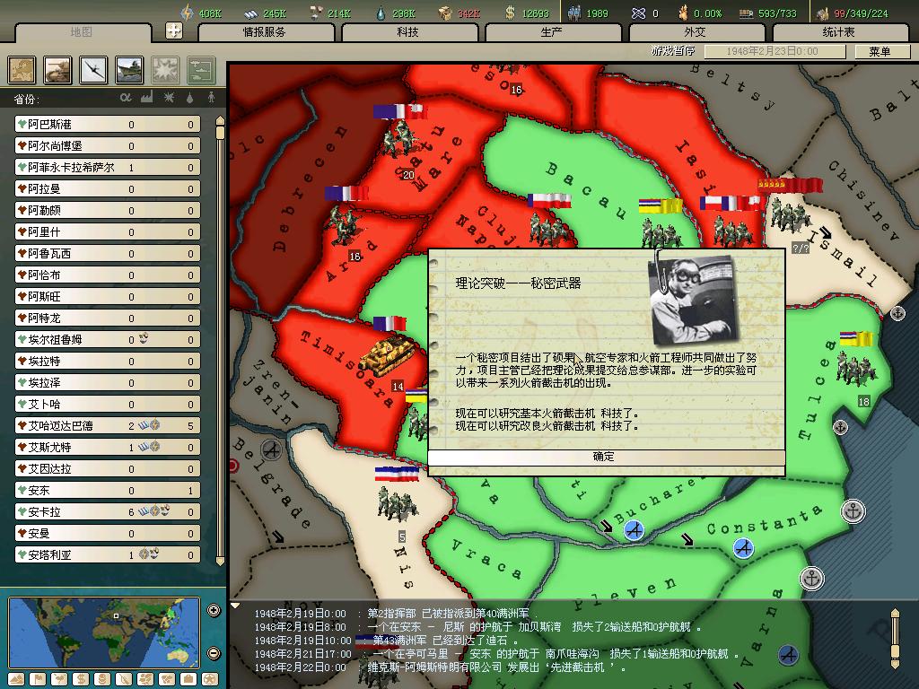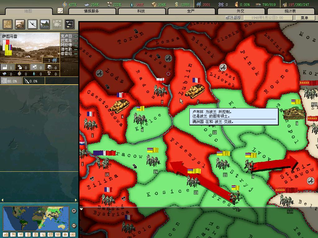 标题: DA1.3原版36满州国娱乐战报, 已更新至:1948年夏季 中日满轴心对抗英法美同盟 欧洲反攻势如破竹 攻陷华沙 吞并波兰!