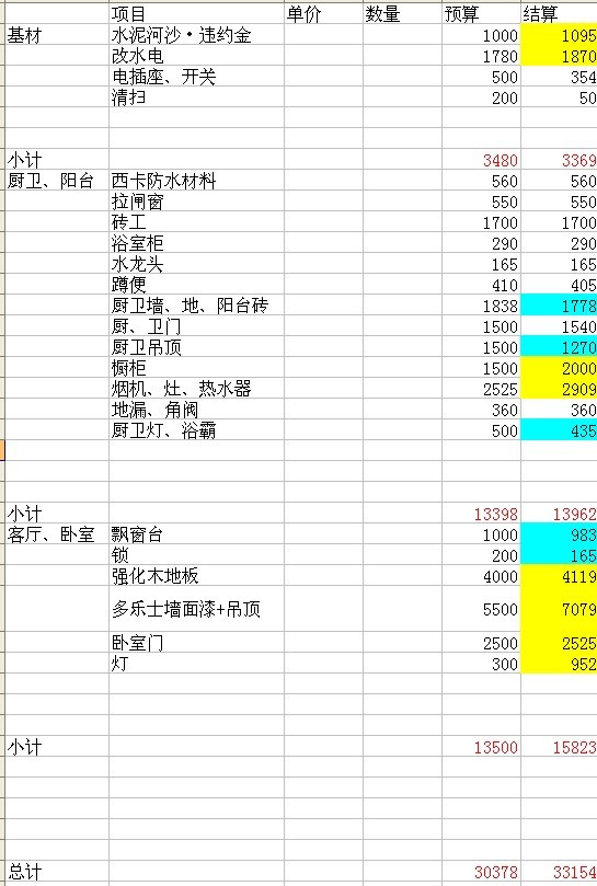 马岱已经说了,费用主要在厨卫。贴瓷砖橱柜热水器灶台油烟机马桶洗脸台这些东西在十几平米的地方甚至还不到的地方却占了40%的支出(算家电)。