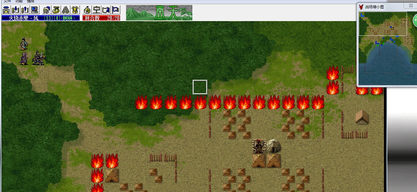 7回合触发灭火,20回合全灭敌军外加逃跑,耗时一晚上,不出场人员,许褚,曹洪,徐晃,3大山地将,精神低不耐打,主要装备,炮车加吸血,于禁黄金甲,典韦干将+象牙+手套,李典青冈+回血+踢云,大夏突破+远程衣+盾,小夏侯虎筋+亮银+的卢,张合龙胆+爆发衣+地形马,思路:主要集中在右手边,优先击杀名将,特别是攻击力高的名将,(别问我怎么杀,于禁+炮车+乐进+典韦,还不死的基本也就剩补刀了)若攻击范围有会补血的文官等,能灭就先灭掉,最后将干将给张辽,绝影给郭嘉,合理跟曹操搭配,一回合可以多走2步路,这关真心很辛苦,敌军全部地形100-110,我方都是大多100及以下,感谢制作组,这关杀得很开心;