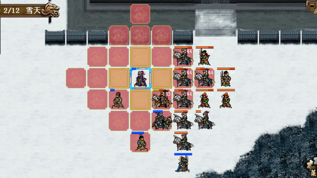 这一关要打好的话对AI行动,配装和仇恨控制,卡位站位的要求非常高,打法脱胎于野夫的神秘马甲阵,但是由于手机版乌骓马及其他地方的一些不同,需要大量的改装变阵,这一关可以说是楼主豪曹手机版的呕心沥血之作,从战前配装到战场走位都力求达到最优的效果,感觉还是干得比较漂亮的,最后按耐不住用手机软件录了小段视频。最难处理的一回合应该是第3回合的合兵,由于和敌军内城守军全面接触,敌方回合防守压力山大,最终费了好大劲才想出办法hold住场面。由于有视频和详细的图片讲解,后面就无需多言了,最终6回合全灭过关。
