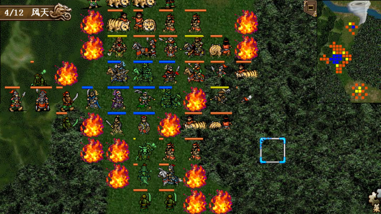 本关友军战斗力非常强,由我方控制的孙坚更是硬如狗,如果觉得开局的压力大可以考虑先保住程普和黄盖,想多刷经验的话也可不必触发关羽和华雄的单挑,很简单的一关,10回合全灭过关。