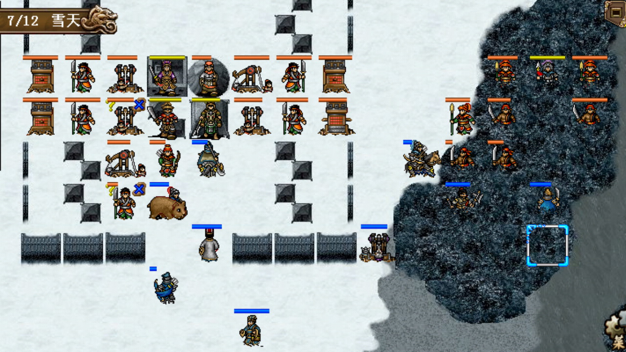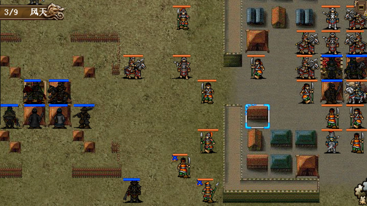 街亭总回合有25回合,难度不大,考虑到和下面的子午谷是连关,装备配置方面可以更多为难度较大的子午谷倾斜,基本上把具有二次移动能力的武将和装备都留在子午谷。城外的部队一路杀过去,城内的武将挤在鹿砦兵营防守反击,18回合全灭过关。