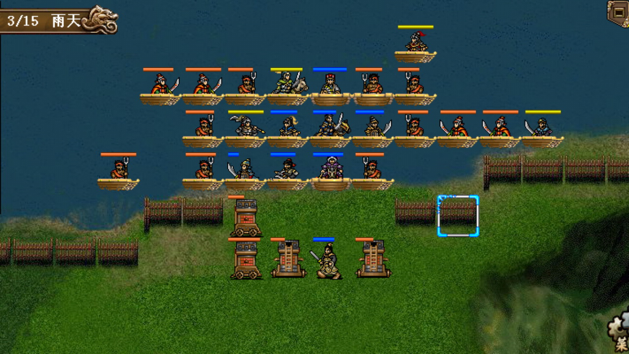 这一关对我来说实在是没有多少存在感,也是比较简单的一关。主要就是力争在刘备援军到来之前攻进城,避免被两面夹击,消灭城中敌军后,再往外推进,只要先灭掉张飞,其他都是小菜,可以尽情收割,最后15回合全灭过关。这一关是敌军第一次有医生出场,但是手机版敌军的医生特别好控制,AI会优先使用觉醒策略解除陷入异常状态的敌军(麻痹、混乱、中毒),用于禁的养由基弓或者贾诩的毒系和麻痹策略都可以使敌军的医生/诸葛亮深陷觉(S)醒(B)之中无暇补给。