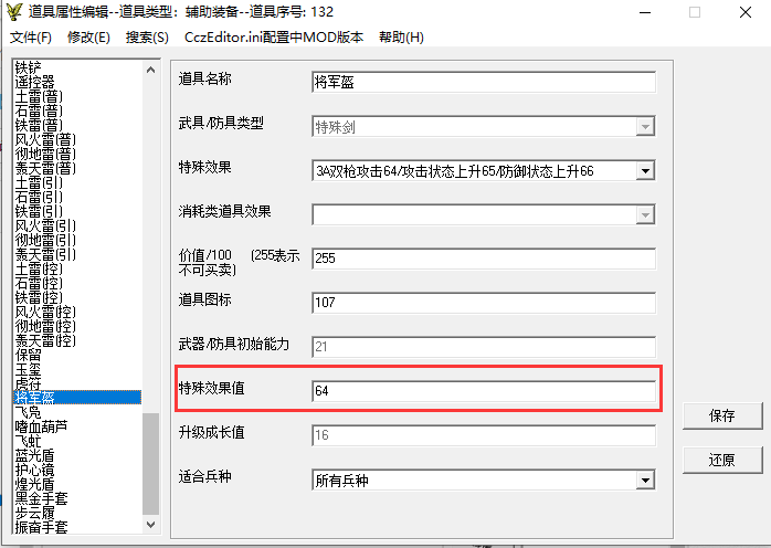 ps,特殊效果值改成65和66是跟游戏中保持一致的,但64不对,为什么??