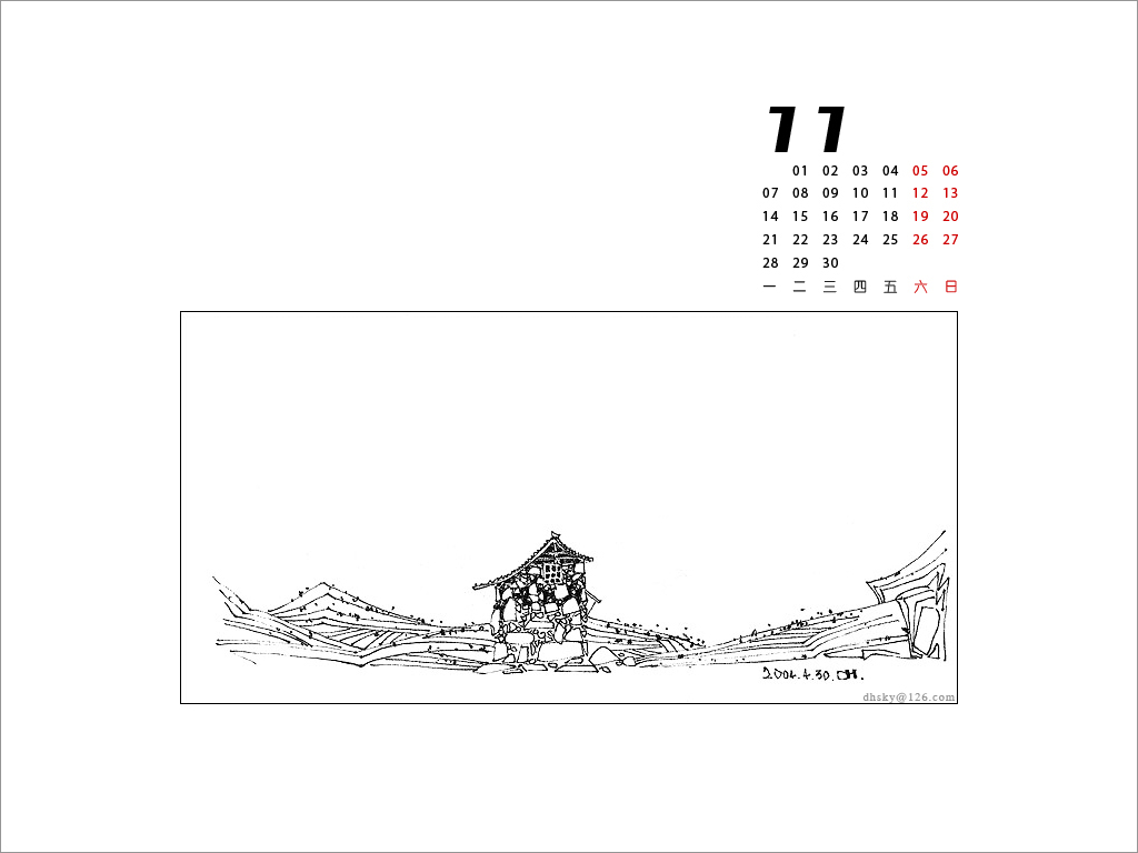 为美术论坛赶做了2005年的月历(1024×768),