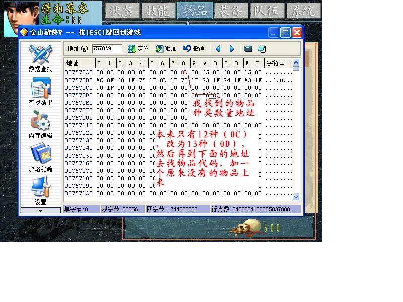可以找到地址,但是改了数量怎么也改不出来,也就是说自己没有的东西,怎么也改不出来