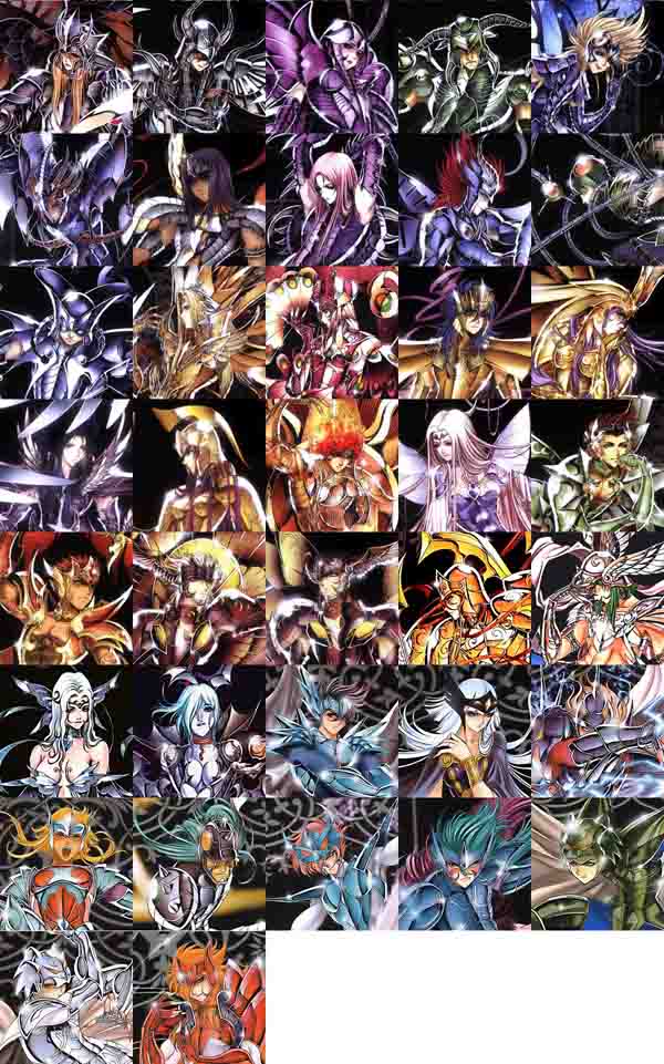 第三排:水瓶座卡妙--双鱼座阿布罗迪--前教皇史昂--穆冥衣版--亚鲁迪巴冥衣版
