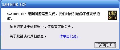 今日想从玩一下三国十,可是全安装好后,按游戏要开打时,确进不去,出现了下面这种情况,这到底是咋了啊,求各位高手帮俺看看是咋了啊,俺那个急啊.
