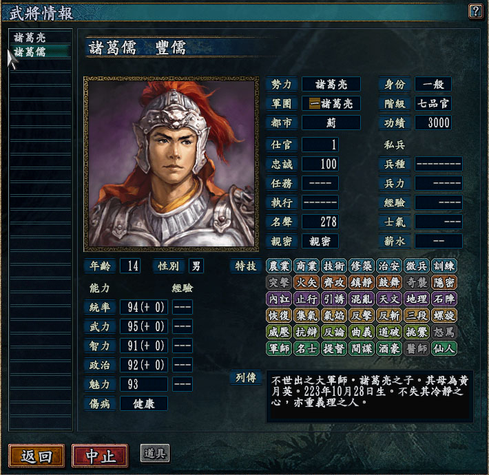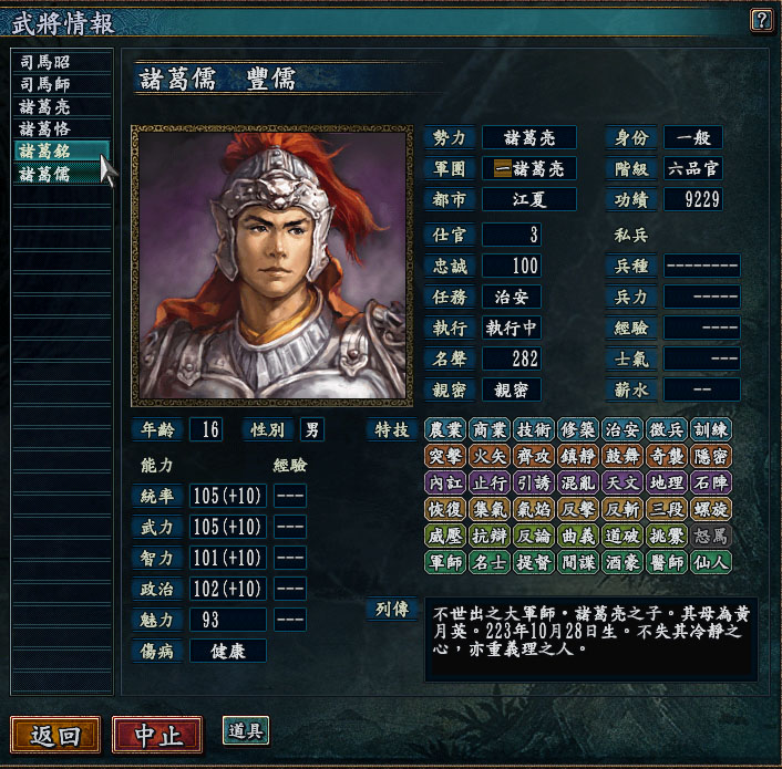 我选诸葛亮生子诸葛儒,分别跟陆逊,姜维,关羽学习过,然后竟然会了仙人,不可思议!!